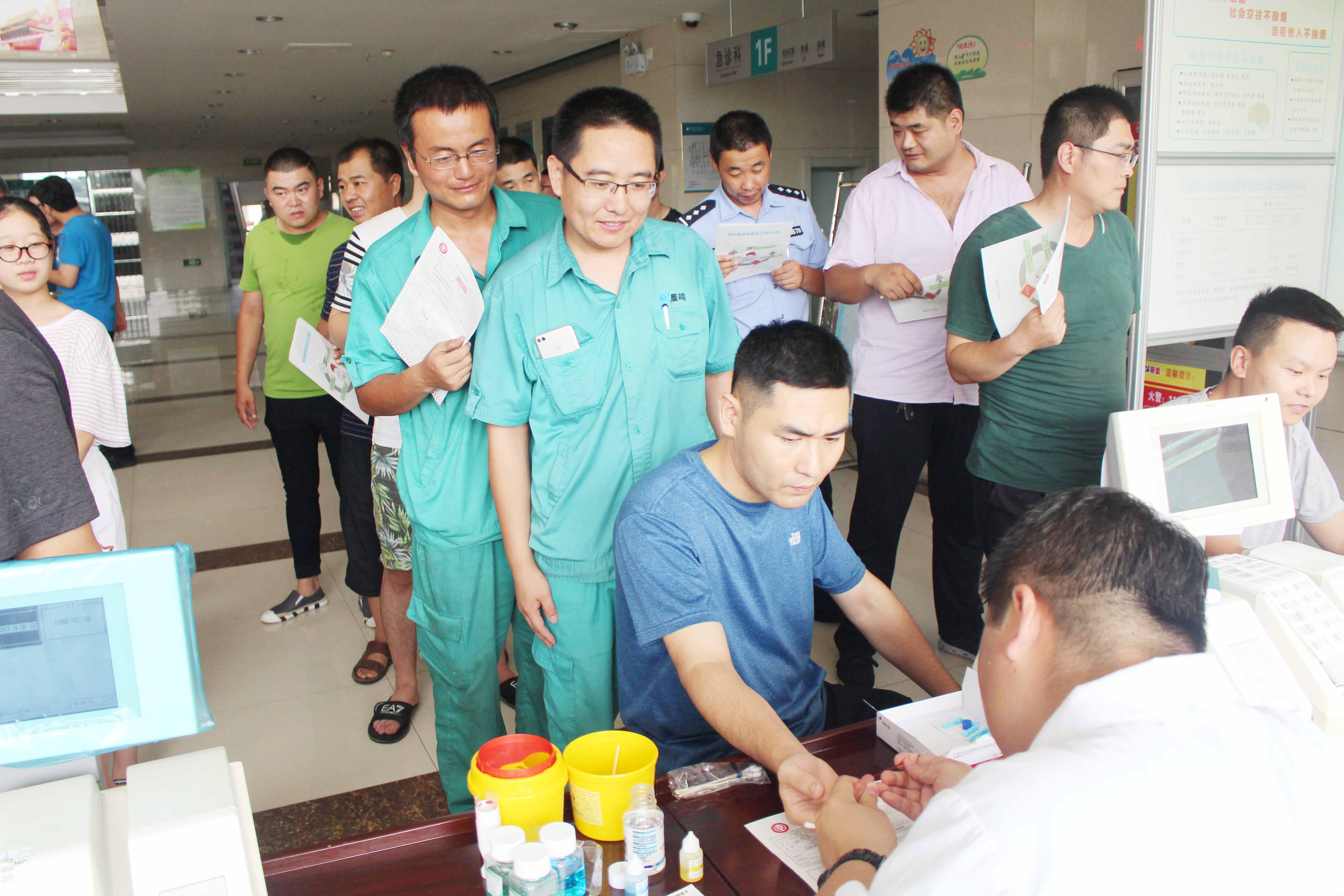 為開展好此次獻(xiàn)血活動,集團(tuán)工會在壽光本埠各單位以自愿為原則發(fā)起征集,建立起一支集團(tuán)獻(xiàn)血志愿者團(tuán)隊(duì)。志愿者中既有中層管理干部,也有一線職工,有的職工在輪班間歇抽空趕來,默默奉獻(xiàn)愛心。8月8日下午,志愿者們準(zhǔn)時來到壽光市立醫(yī)院獻(xiàn)血點(diǎn),耐心有序地排隊(duì),在醫(yī)護(hù)人員的引導(dǎo)下,經(jīng)過填表、查體、化驗(yàn)、抽血等環(huán)節(jié),認(rèn)真完成各項(xiàng)獻(xiàn)血流程。